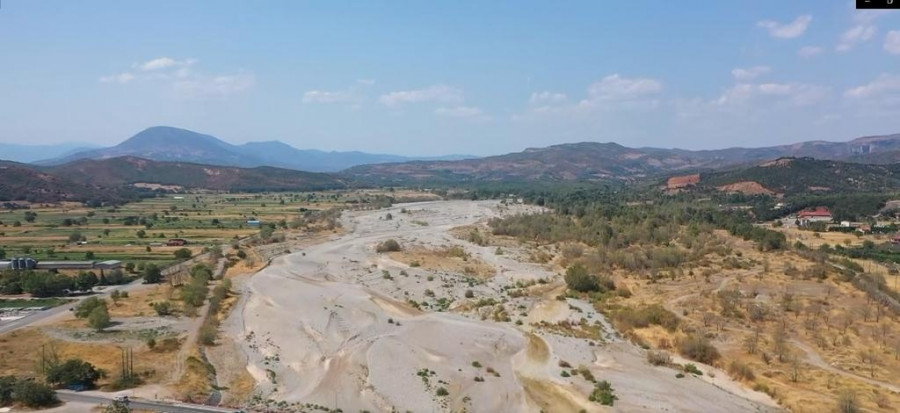 Εκατοντάδες στρέμματα στην κοίτη του ποταμού θυμίζουν έρημο καθώς το ποτάμι έχει στερέψει από νερό.