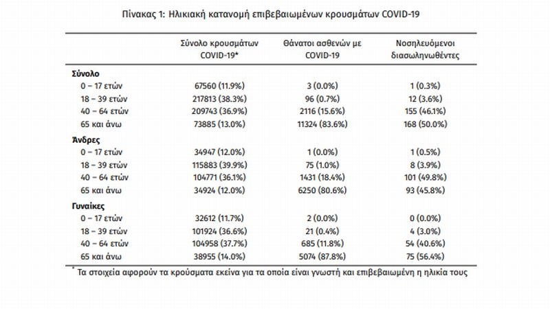 Οι νέοι θάνατοι ασθενών με COVID-19 είναι 28, ενώ από την έναρξη της επιδημίας έχουν καταγραφεί συνολικά 13.539 θάνατοι. Το 95.3% είχε υποκείμενο νόσημα ή/και ηλικία 70 ετών και άνω.