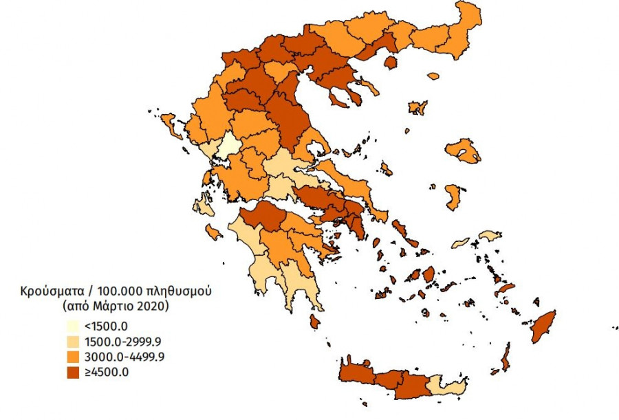 Τα κρούσματα ανά περιφερειακή ενότητα