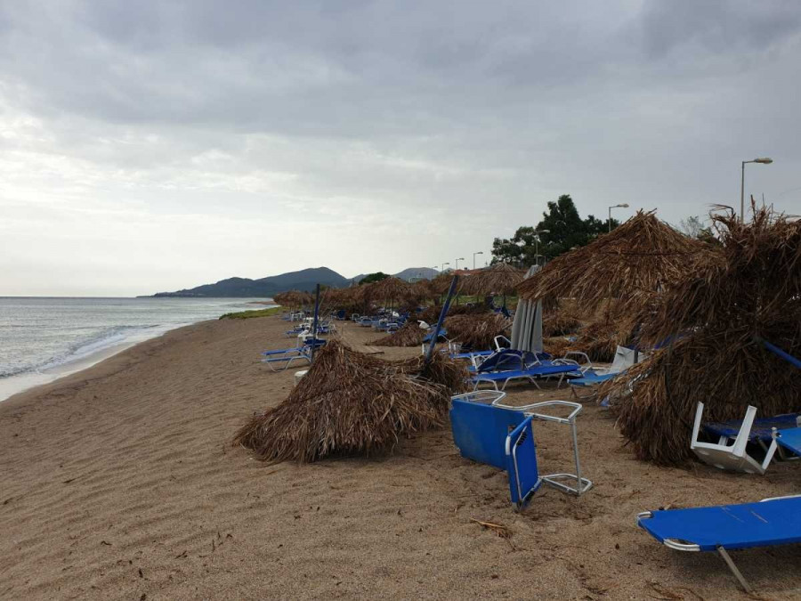 Σφοδρή ήταν η καταιγίδα που χτύπησε το Πευκί στη Βόρεια Ευβοια με τους ανέμους να ξηλώνουν ομπρέλες και ξαπλώστρες από την παραλία ανέφερε το eviavima.gr.