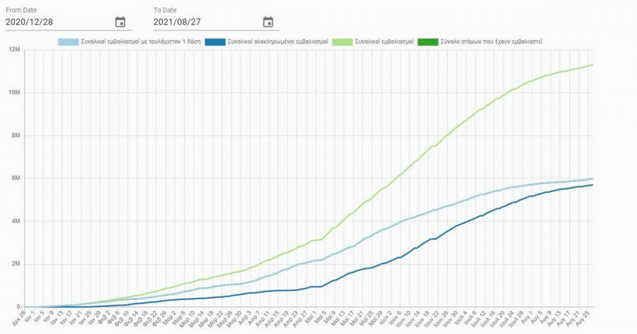 Σύμφωνα με τα στατιστικά του εμβολιασμού, έχουν πραγματοποιηθεί 5.991.224 εμβολιασμοί με τουλάχιστον μια δόση, ενώ 5.697.216 έχουν ολοκληρώσει τον εμβολιασμό.