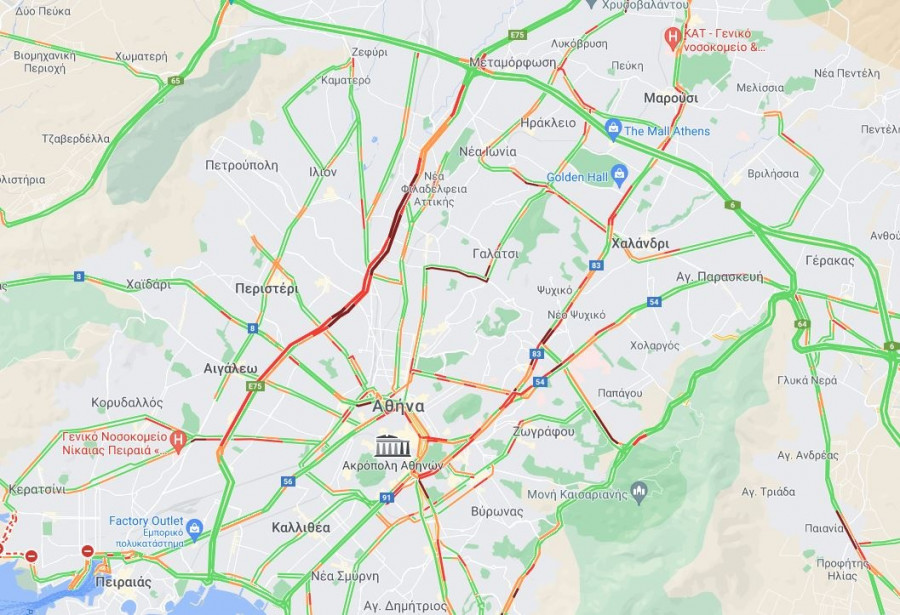Αυξημένη είναι η κίνηση στους δρόμους της Αθήνας, από το πρωί της Τρίτης με τα μεγαλύτερα προβλήματα να εντοπίζονται στον Κηφισό, στην Λεωφόρο Κηφισίας, στην Μεσογείων στο ύψος της Κατεχάκη, αλλά και στους γύρω δρόμους του κέντρου.