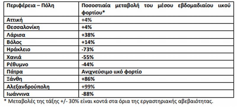 Ενδεικτικό είναι το παράδειγμα της Αλεξανδρούπολης που είχε αύξηση 99%, όπως και της Ξάνθης που είχε αύξηση 86%. Αντίθετα, μείωση κατά 88% στο ιικό φορτίο εντοπίζεται στα Ιωάννινα, ενώ στο Ηράκλειο αυτή έφτασε στο 73%, στα Χανιά στο 55% και στο Ρέθυμνο στο 44%.