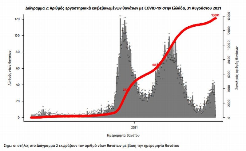 Οι νέοι θάνατοι ασθενών με COVID-19 είναι 22, ενώ από την έναρξη της επιδημίας έχουν καταγραφεί συνολικά 13.691 θάνατοι. Το 95.3% είχε υποκείμενο νόσημα ή/και ηλικία 70 ετών και άνω.