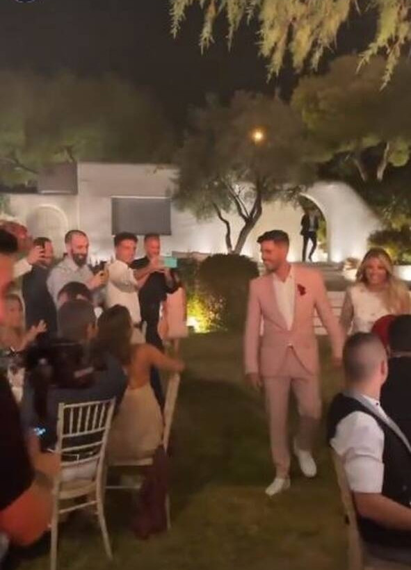 Οι δυο τους ανέβηκαν στο stage όπου τραγούδησαν την επιτυχία τους διασκεδάζοντας τους καλεσμένους και το παντρεμένο ζευγάρι.