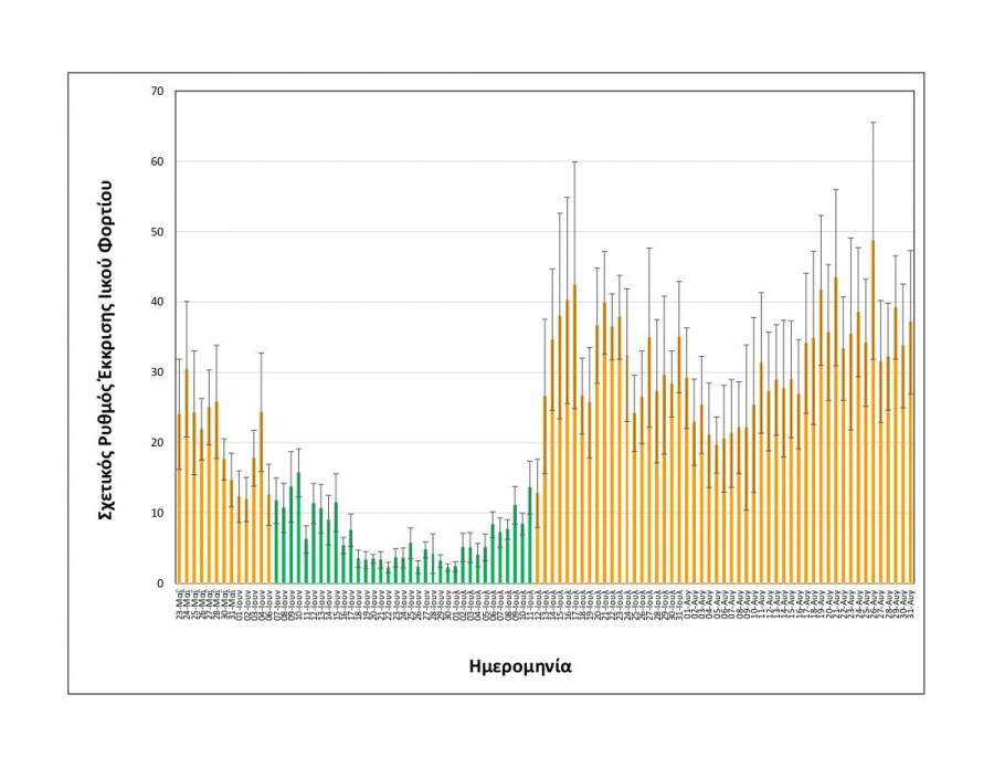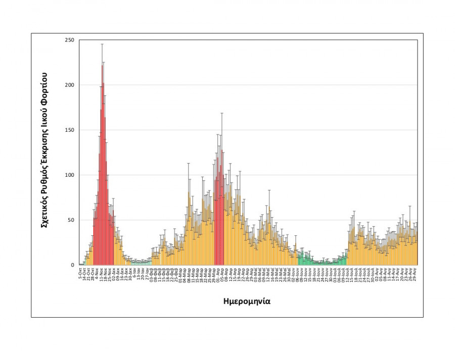Όπως φαίνεται στα διαγράμματα που παρουσιάζει το ΑΠΕ-ΜΠΕ, η συγκέντρωση του ιικού φορτίου και οι ημερήσιες διακυμάνσεις της είναι παρόμοιες με εκείνες του δεύτερου δεκαπενθημέρου του Ιουλίου.