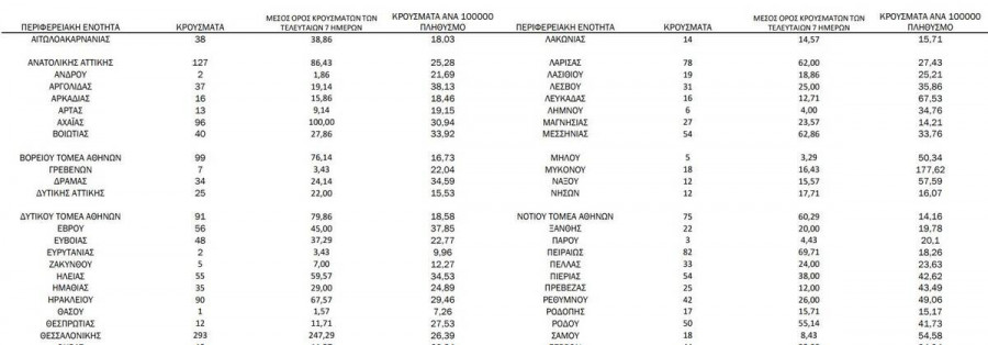 Τα κρούσματα ανά Περιφερειακή Ενότητα