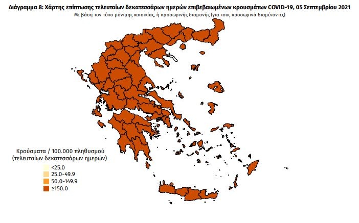 Με βάση τα επιβεβαιωμένα κρούσματα των τελευταίων 7 ημερών, 155 θεωρούνται σχετιζόμενα με ταξίδι από το εξωτερικό και 1.591 είναι σχετιζόμενα με ήδη γνωστό κρούσμα.