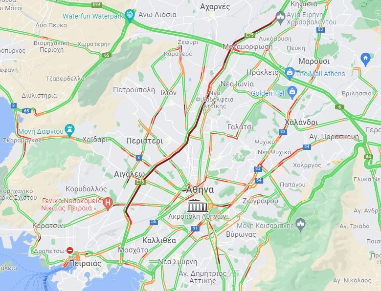 Δείτε χάρτη με την εικόνα της κίνησης λίγο πριν τις 8 το πρωί