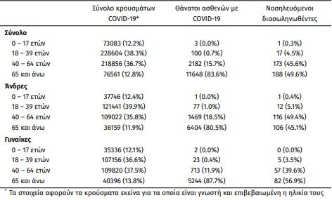 Το 95.4% είχε υποκείμενο νόσημα ή/και ηλικία 70 ετών και άνω.