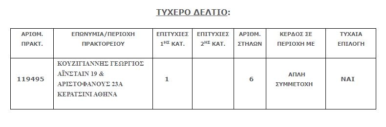 Σημειώνεται ότι στην δεύτερη κατηγορία του Τζόκερ δεν βρέθηκε τυχερός στην κλήρωση της Τρίτης και έτσι το ποσό των €88.894,07 μεταφέρεται στην ίδια κατηγορία της επόμενης κλήρωσης.