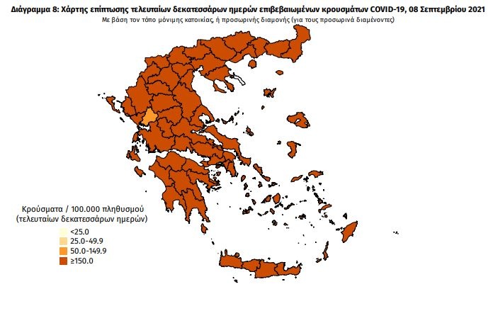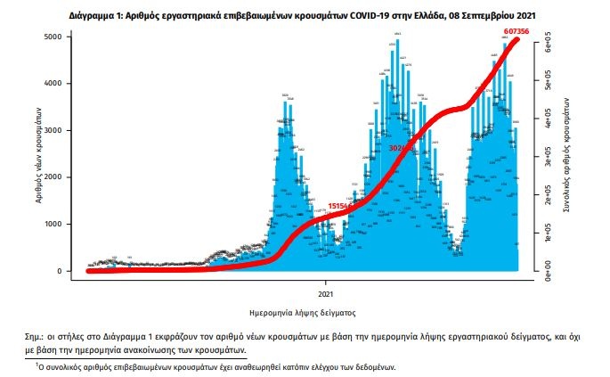 Κορονοϊός - Όλες οι ειδήσεις: Την Τετάρτη 8 Σεπτεμβρίου 2021, ο ΕΟΔΥ ανακοίνωσε, 2.198 νέα κρούσματα του νέου ιού στη χώρα, εκ των οποίων τα 16 εντοπίστηκαν σε ελέγχους στις πύλες εισόδου της χώρας.