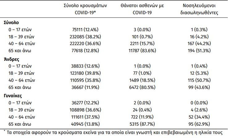 Το 95.4% είχε υποκείμενο νόσημα ή/και ηλικία 70 ετών και άνω.
