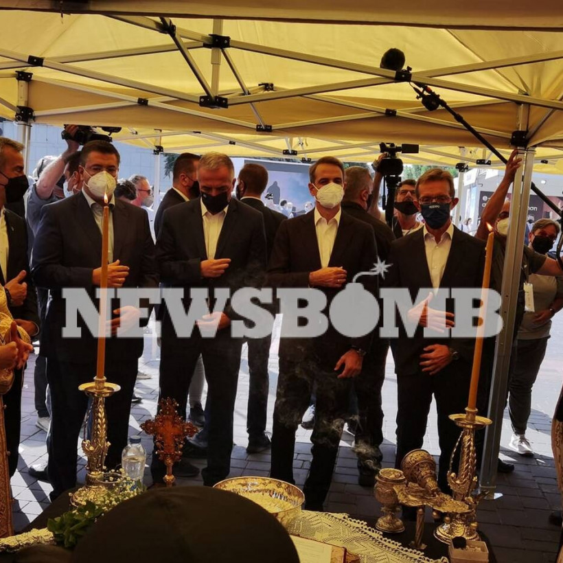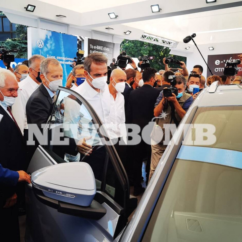 Μετά τον Αγιασμό, ο κ. Μητσοτάκης ξεκίνησε την ξενάγησή του στα περίπτερα της Έκθεσης, με τον ίδιο να δείχνει ιδιαίτερο ενδιαφέρον για τα ηλεκτρικά αυτοκίνητα και ποδήλατα: