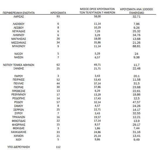 Τα κρούσματα ανά Περιφερειακή Ενότητα