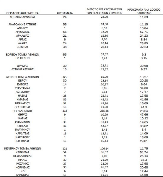 Τα κρούσματα ανά Περιφερειακή Ενότητα: