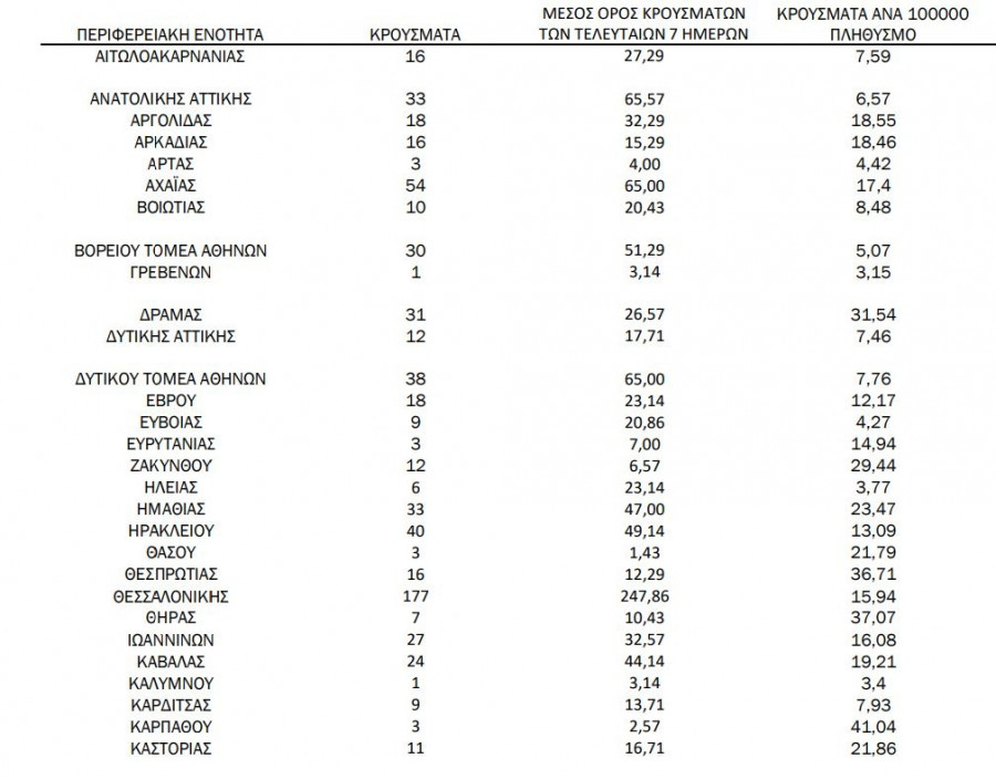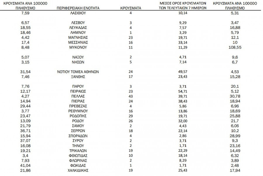 Τα κρούσματα ανά Περιφερειακή Ενότητα