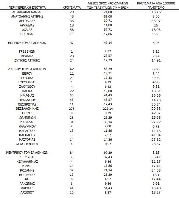 Αναλυτικότερα τα κρούσματα στις περιφερειακές ενότητες που ανήκουν στην Αττική: