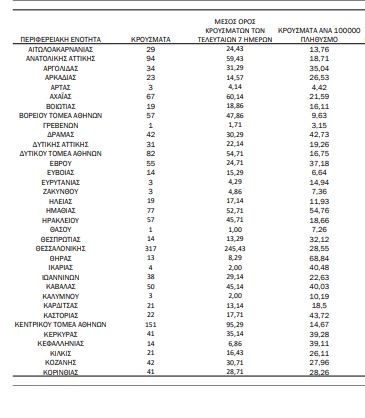 Αναλυτικά η γεωγραφική κατανομή των κρουσμάτων