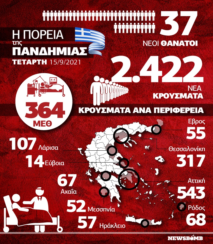 Κρούσματα σήμερα: Προβληματίζει η διασπορά του ιού - Όλα τα δεδομένα στο infographic του Newsbomb.gr