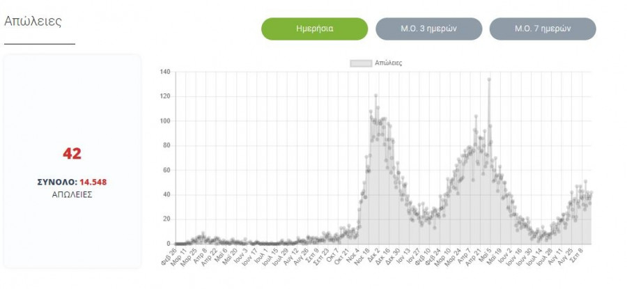 Οι νέοι θάνατοι ασθενών με COVID-19 είναι 42, ενώ από την έναρξη της επιδημίας έχουν καταγραφεί συνολικά 14.548 θάνατοι.