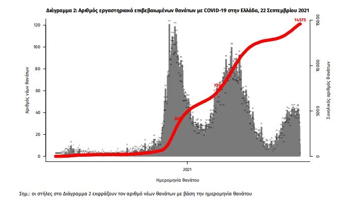 Οι νέοι θάνατοι ασθενών με COVID-19 είναι 26, ενώ από την έναρξη της επιδημίας έχουν καταγραφεί συνολικά 14.575 θάνατοι. Το 95.4% είχε υποκείμενο νόσημα ή/και ηλικία 70 ετών και άνω.