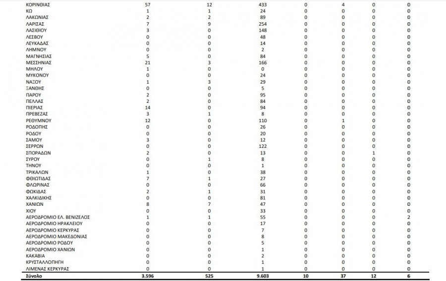 Από τον έλεγχο των 838 δειγμάτων, αναδείχθηκαν συνολικά 809 δείγματα με στελέχη ειδικού ενδιαφέροντος (Variants Of Concern - VOC) και 3 δείγματα με στελέχη σε αποκλιμάκωση (De-escalated Variants). Εκ των 809 δειγμάτων με στελέχη ειδικού ενδιαφέροντος, τα 745 αφορούν στο στέλεχος Delta, 63 αφορούν στο Alpha και 1 αφορά στο Βeta. Εκ των 3 δειγμάτων με στελέχη σε αποκλιμάκωση, τα 3 αφορούν στο Α.28.