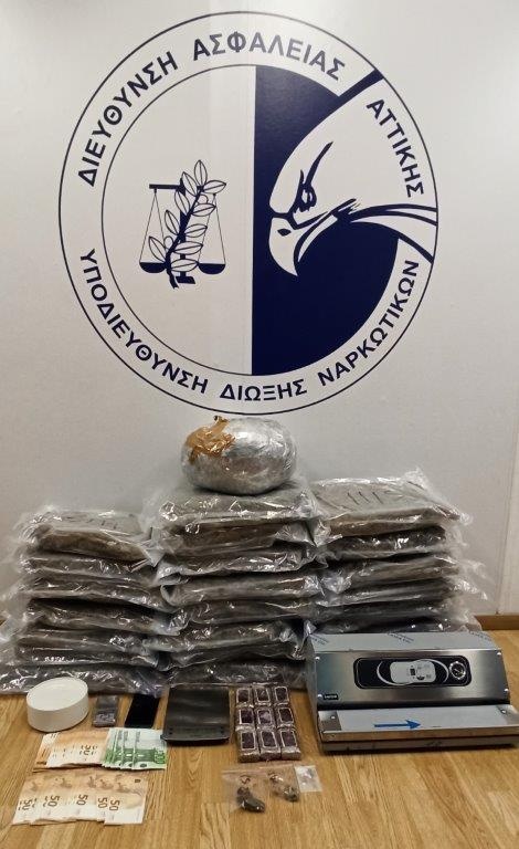 Σε έρευνα που επακολούθησε στην οικία του ημεδαπού στον Κορυδαλλό, βρέθηκαν ποσότητες κατεργασμένης και ακατέργαστης κάνναβης καθώς και μικροποσότητα κοκαΐνης.