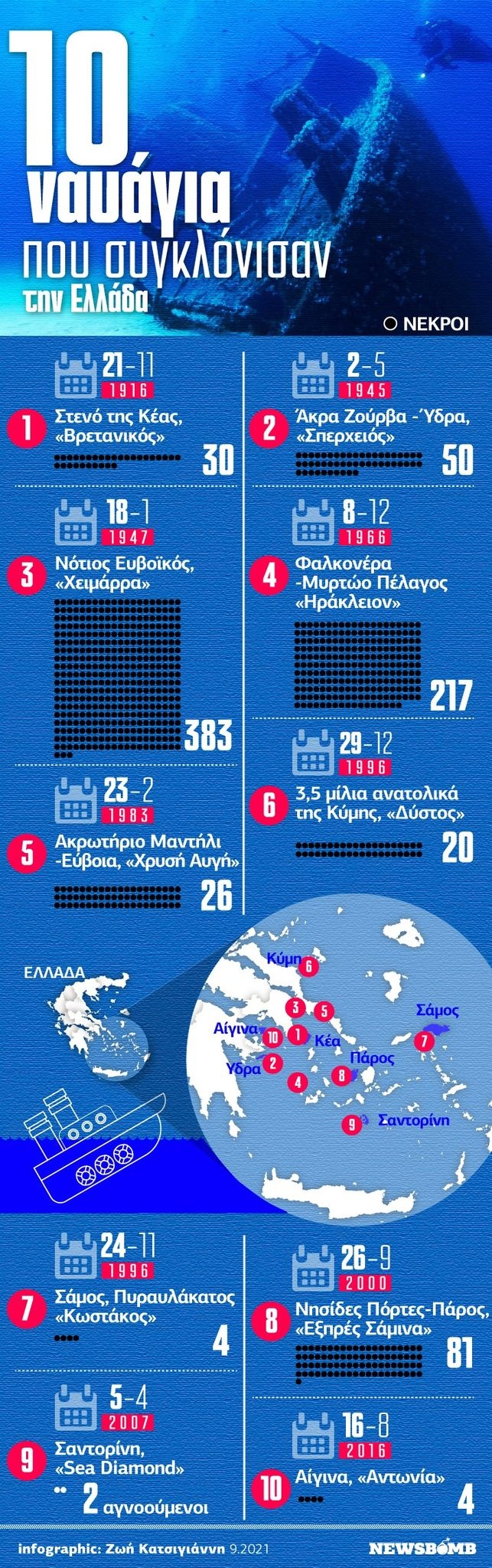 Το Newsbomb.gr μέσω infographic παρουσιάζει τα στοιχεία των 10 μεγαλύτερων ναυαγίων στις ελληνικές θάλασσες: