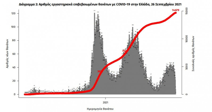 Οι νέοι θάνατοι ασθενών με COVID-19 είναι 24, ενώ από την έναρξη της επιδημίας έχουν καταγραφεί συνολικά 14.679 θάνατοι. Το 95,4% είχε υποκείμενο νόσημα ή/και ηλικία 70 ετών και άνω.