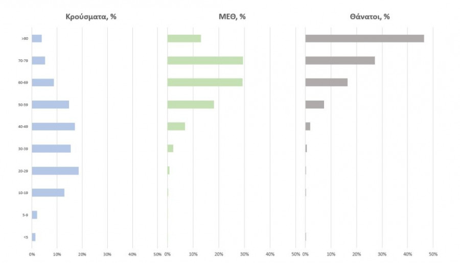 Από την αρχή της πανδημίας έχουν εξέλθει από τις ΜΕΘ 3.129 ασθενείς. Οι εισαγωγές νέων ασθενών Covid-19 στα νοσοκομεία της επικράτειας είναι 191. Ο μέσος όρος εισαγωγών του επταημέρου είναι 185 ασθενείς. Η διάμεση ηλικία των κρουσμάτων είναι 39 έτη , ενώ η διάμεση ηλικία των θανόντων είναι 78 έτη