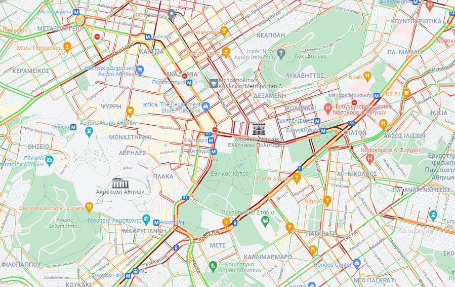 Δείτε χάρτη με την κίνηση στο κέντρο της Αθήνας