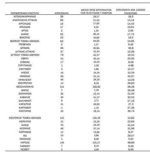 Τα κρούσματα ανά Περιφερειακή Ενότητα:
