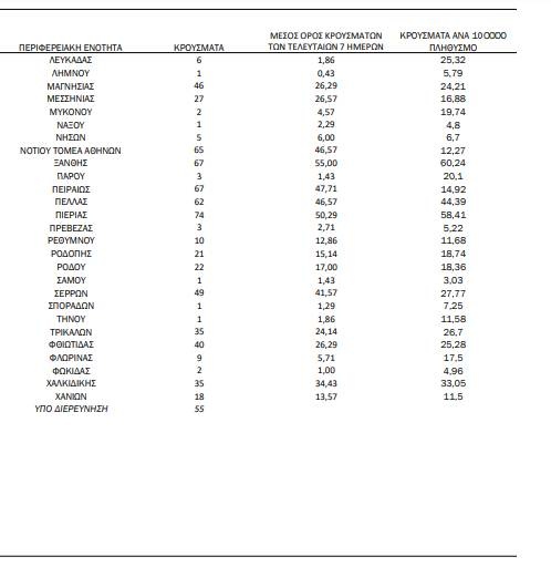 - 55 κρούσματα στην Π.Ε. Αχαΐας