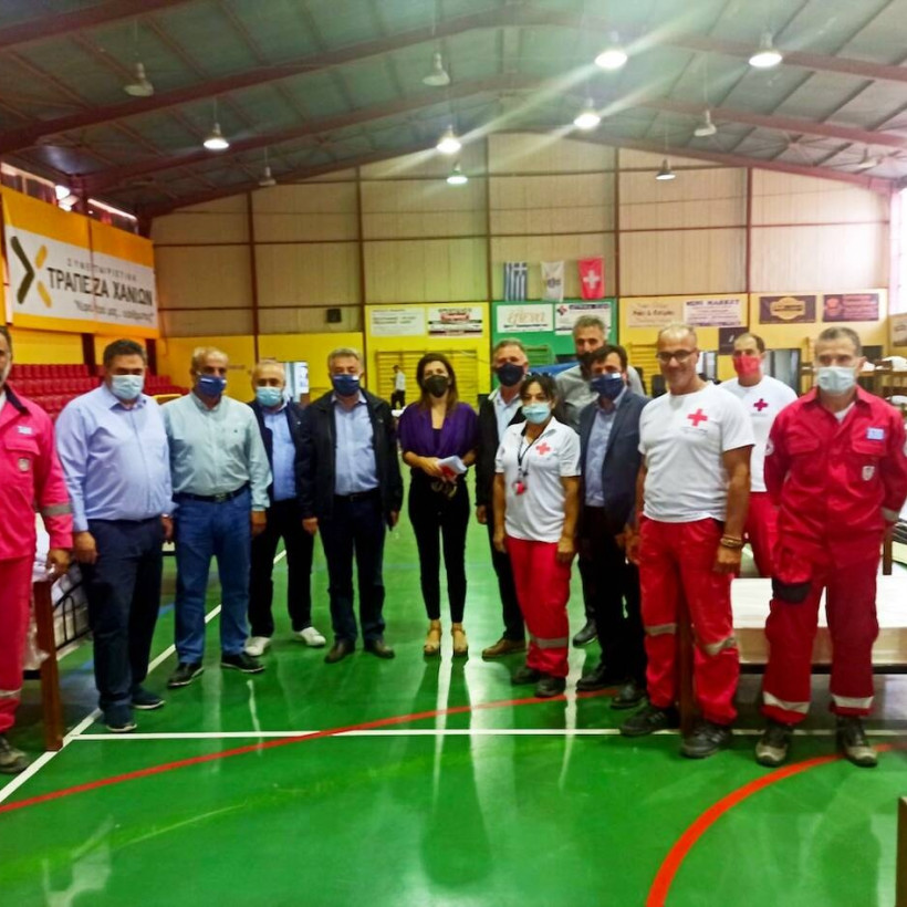 Ο Περιφερειάρχης Κρήτης Σταύρος Αρναουτάκης για τον συντονισμό - προώθηση των διαδικασιών, επισκέφθηκε με τον Δήμαρχο Μανόλη Φραγκάκη τον υπό διαμόρφωση χώρο για την εγκατάσταση των πρώτων οικίσκων, ενώ συναντήθηκαν στον εξοπλισμένο χώρο υποδοχής στο κλειστό γυμναστήριο Αρκαλοχωρίου με τους εκπροσώπους των συνεργαζόμενων φορέων και εθελοντές.
