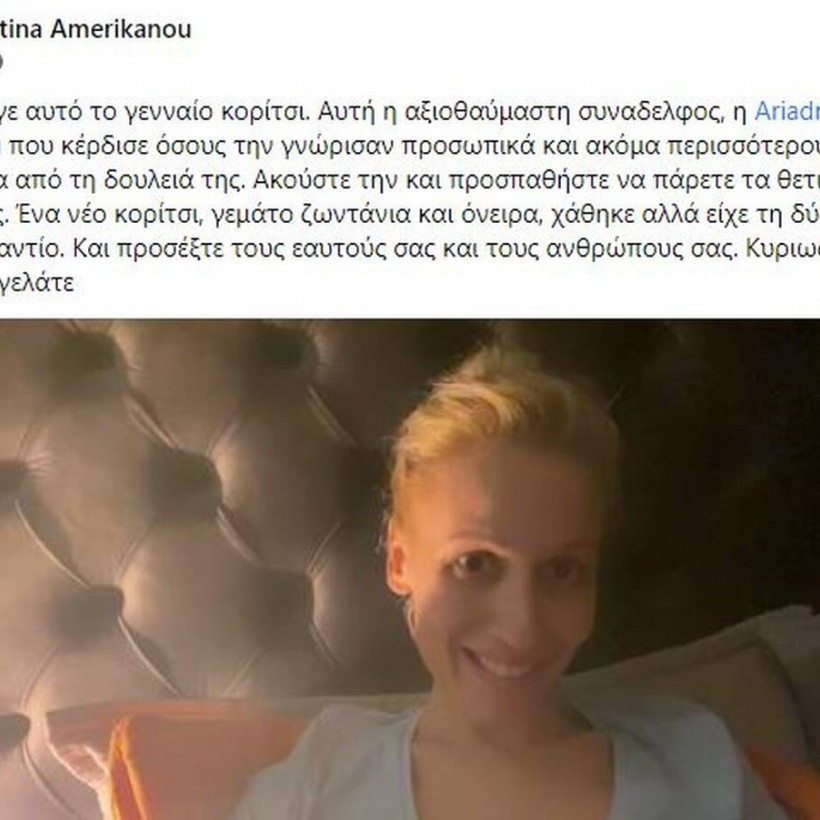 Σε ανάρτηση στην προσωπική της σελίδα στο Facebook μεταφέρεται το τελευταίο μήνυμα της Αριάδνης Γερασιμίδου στο οποίο, μεταξύ άλλων, γράφει «μάλλον τελικά έφυγα για κάπου καλύτερα».