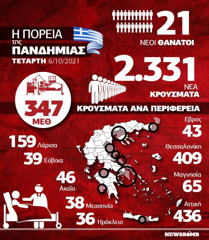 Όπως προκύπτει από την επιδημιολογική έκθεση του ΕΟΔΥ, οι 21 άνθρωποι που πέθαναν από τον φονικό ιό το τελευταίο 24ωρο, προστίθενται στον κατάλογο των θανάτων από κορονοϊό, με ένα ακόμα μακάβριο ρεκόρ να «σπάει».