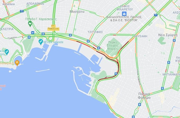 Όπως φαίνεται στον χάρτη της Google η κίνηση στο ρεύμα προς Γλυφάδα στην παραλιακή ξεκινά σχεδόν από το ύψος της συμβολής με τη λεωφόρο Κηφισού.