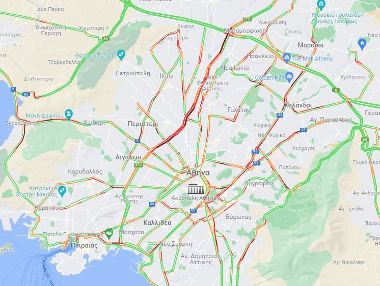 Δείτε χάρτη με την κίνηση λίγο μετά τις 8 το πρωί
