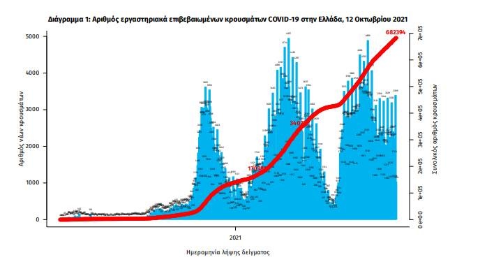 Τα στοιχεία που παρουσιάζονται αφορούν περιστατικά από την επιδημιολογική επιτήρηση της νόσου από το νέο κορονοϊό (COVID19), με βάση τα δεδομένα που έχουν δηλωθεί στον ΕΟΔΥ και καταγραφεί μέχρι τις 12 Οκτωβρίου 2021 (ώρα 15:00).