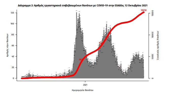 Οι νέοι θάνατοι ασθενών με COVID-19 είναι 32, ενώ από την έναρξη της επιδημίας έχουν καταγραφεί συνολικά 15.210 θάνατοι. Tο 95.3% είχε υποκείμενο νόσημα ή/και ηλικία 70 ετών και άνω.