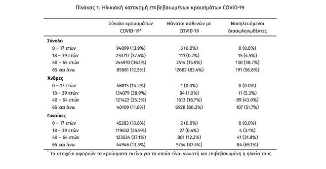 Τα νέα εργαστηριακά επιβεβαιωμένα κρούσματα της νόσου που καταγράφηκαν τις τελευταίες 24 ώρες είναι 3.065, εκ των οποίων 6 εντοπίστηκαν κατόπιν ελέγχων στις πύλες εισόδου της χώρας. Ο συνολικός αριθμός των κρουσμάτων ανέρχεται σε 682.394 (ημερήσια μεταβολή +0.5%), εκ των οποίων 50.9% άνδρες.