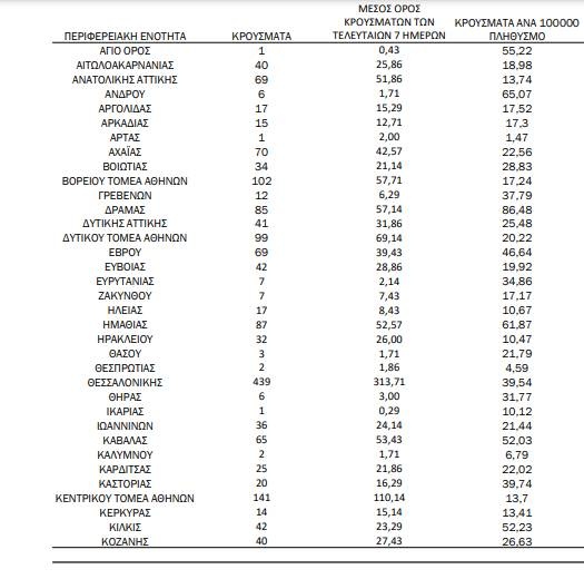 Τα κρούσματα ανά περιφερειακή ενότητα
