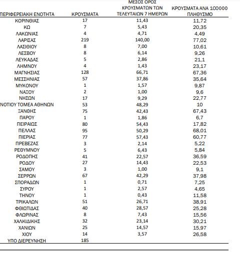 - 128 κρούσματα στην Π.Ε. Μαγνησίας