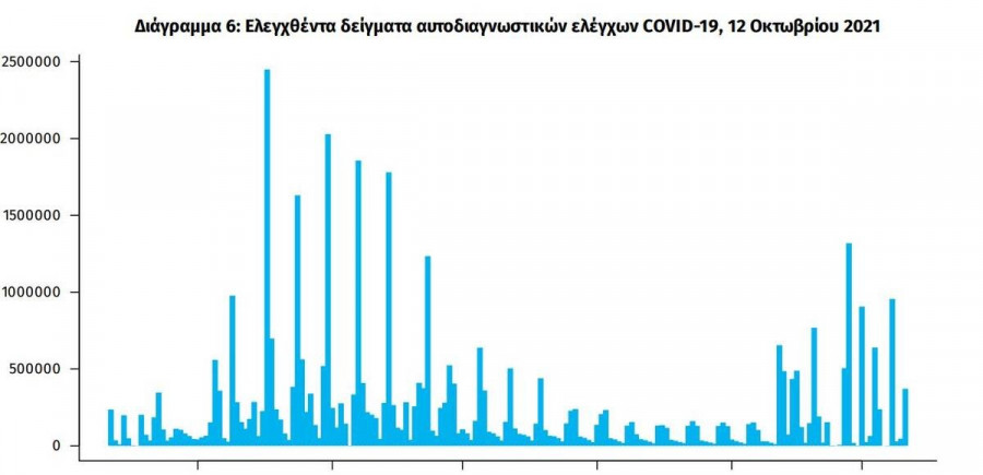 Έως 11 Οκτωβρίου 2021, έχουν καταγραφεί ηλεκτρονικά 42.254.683 δηλώσεις αποτελέσματος αυτοδιαγνωστικού ελέγχου, ενώ 2.456.931 άτομα προσήλθαν για επανέλεγχο.