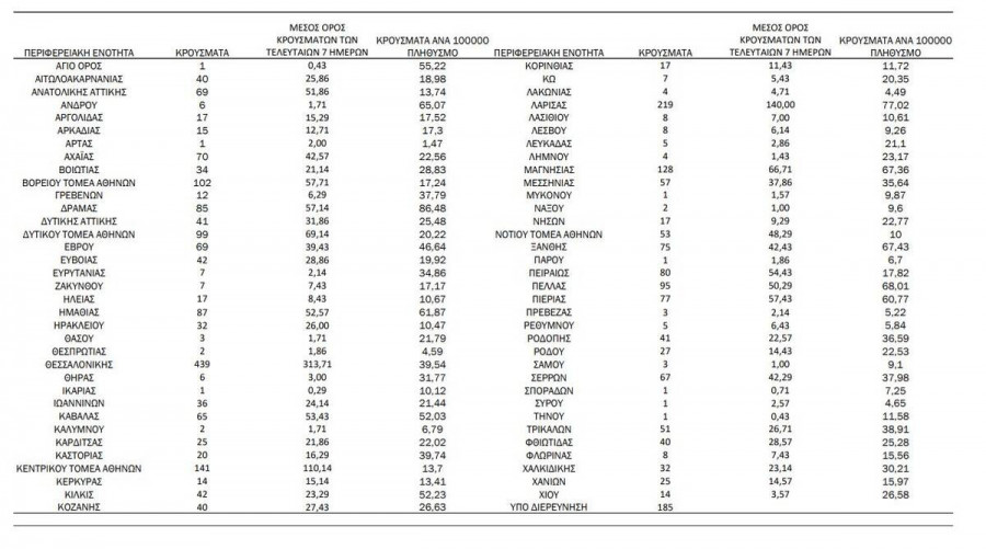 Τα κρούσματα ανά περιφερειακή ενότητα