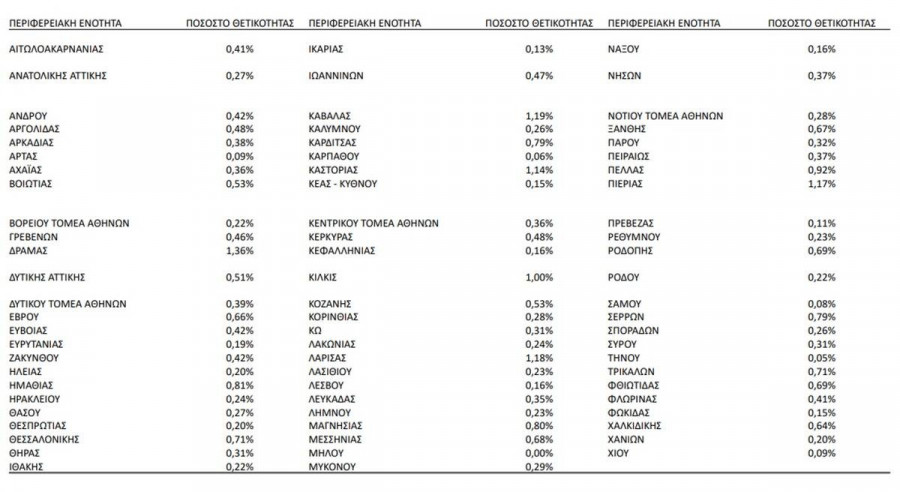Δείτε επίσης το ποσοστό θετικότητας ανά Περιφέρεια: