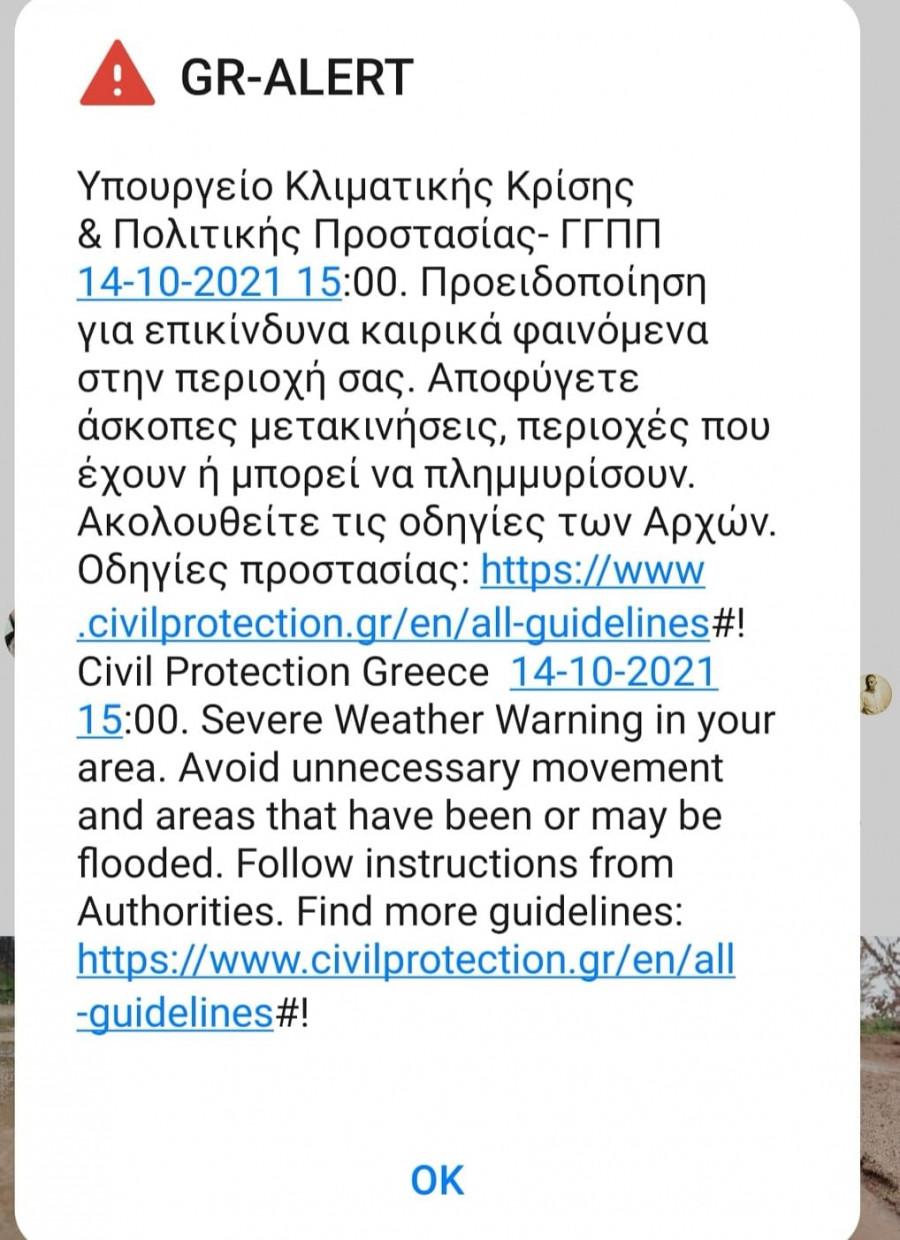 Το 112 έστειλε μήνυμα στους κατοίκους της Εύβοιας. «Προειδοποίηση για επικίνδυνα καιρικά φαινόμενα στην περιοχή σας. Αποφύγετε άσκοπες μετακινήσεις, περιοχές που έχουν ή μπορεί να πλημμυρίσουν. Ακολουθείτε τις οδηγίες των αρχών», αναφέρει το μήνυμα.