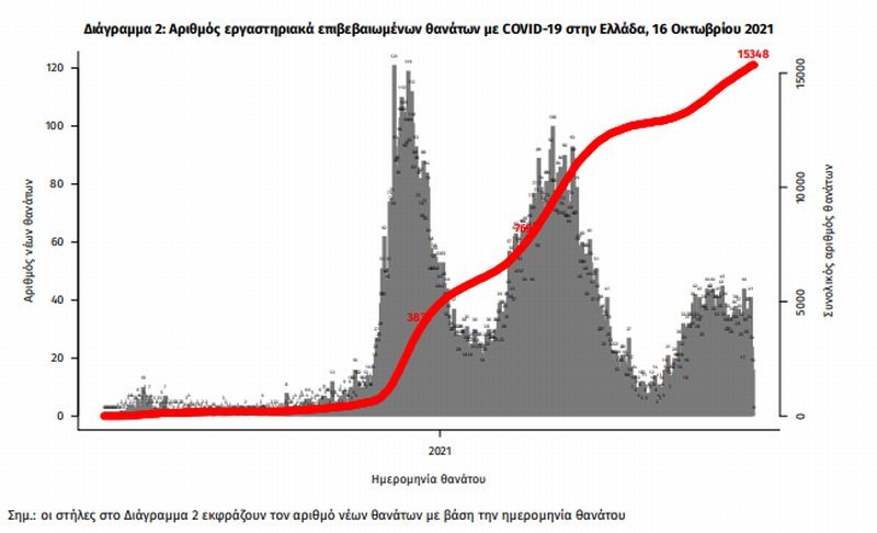 Οι νέοι θάνατοι ασθενών με COVID-19 είναι 30, ενώ από την έναρξη της επιδημίας έχουν καταγραφεί συνολικά 15.348 θάνατοι. Το 95.4% είχε υποκείμενο νόσημα ή/και ηλικία 70 ετών και άνω.