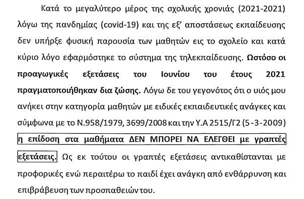 Εδώ να σημειωθεί ότι με αφορμή τις γραπτές εξετάσεις η κυρία Γιαννακοπούλου απέστειλε τον Σεπτέμβριο του 2021 εξώδικο προς το σχολείο, απόσπασμα του οποίου δημοσιεύει το Newsbomb.gr.